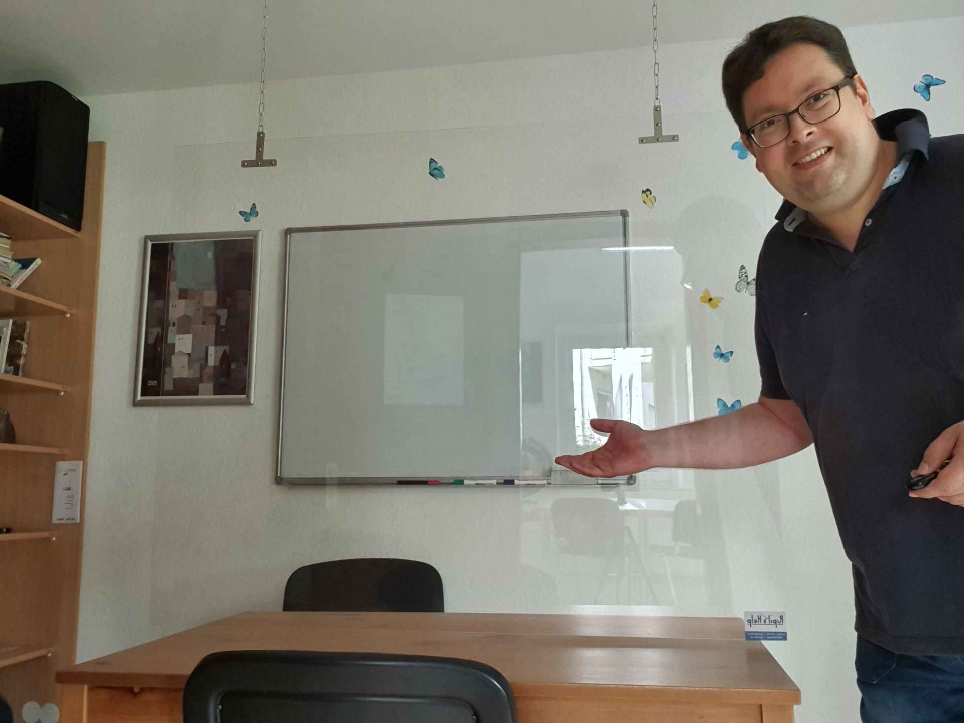 Wir haben in alle Unterrichtsräume große Spuckschutze installiert, Desinfektions-Spender montiert, Aufsätze für Türdrücker angebracht, Hinweisschilder aufgehängt und ein Konzept entwickelt.